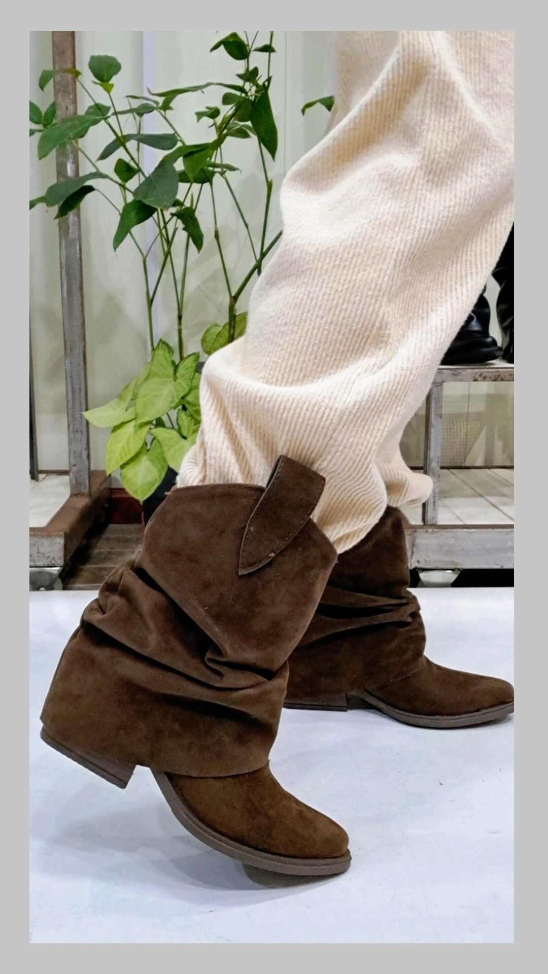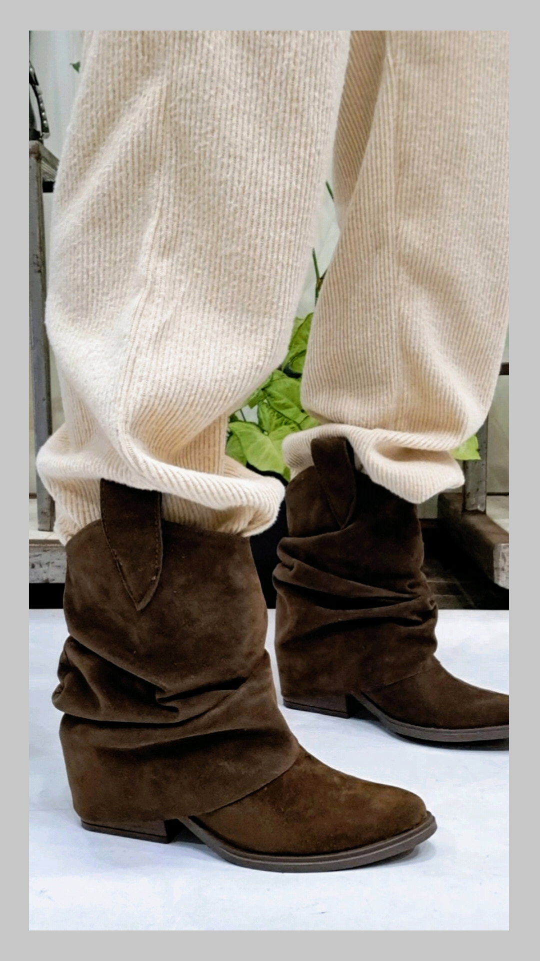 Bota texana gamuzada con caña volcada. Horma ajustada.