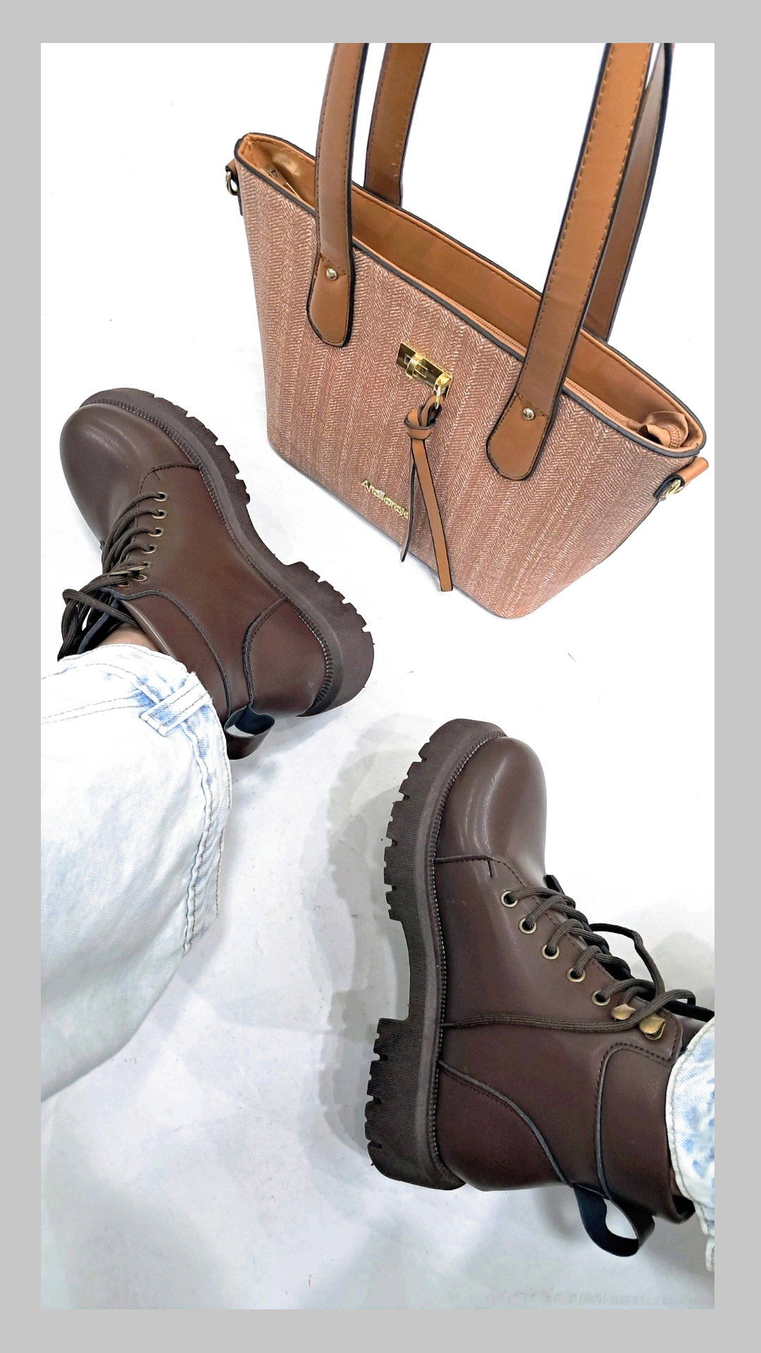 Borcego ecocuero acordonado con terminación de alpines.