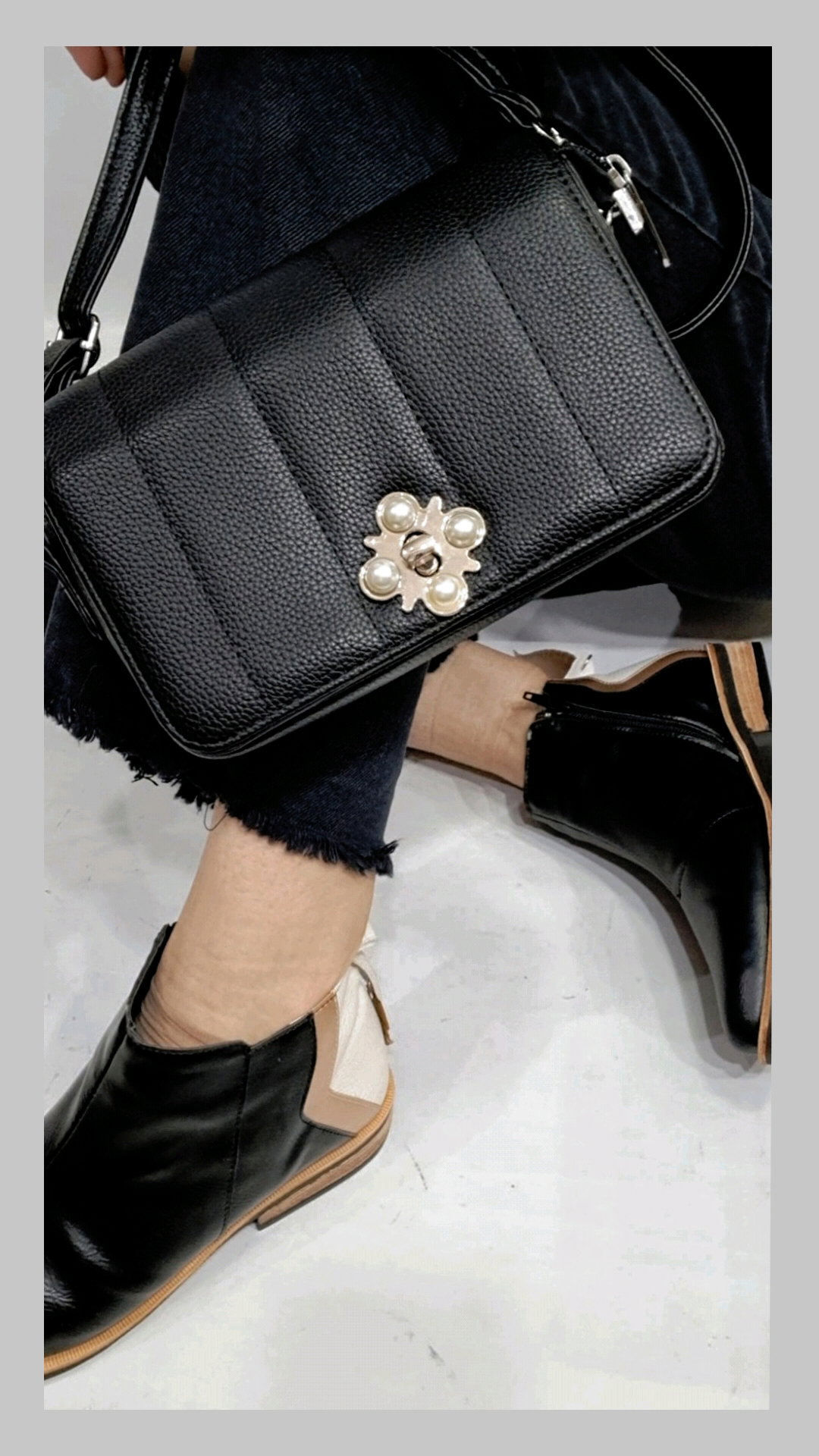 Mini bag ecocuero. Con correa desmontable. Cierre metálico con boche de perlas. Medidas: Ancho: 20 cm. Alro: 14 cm. Base: 7 cm.