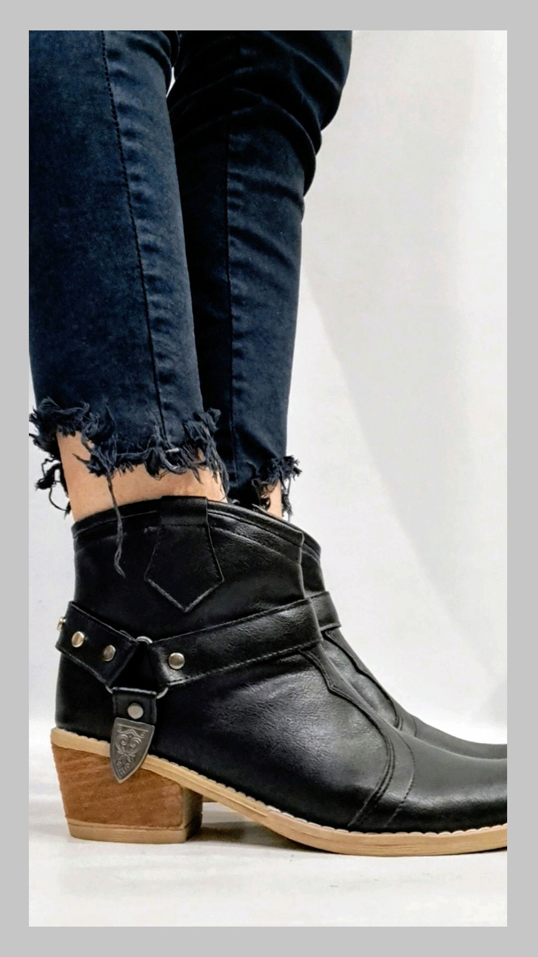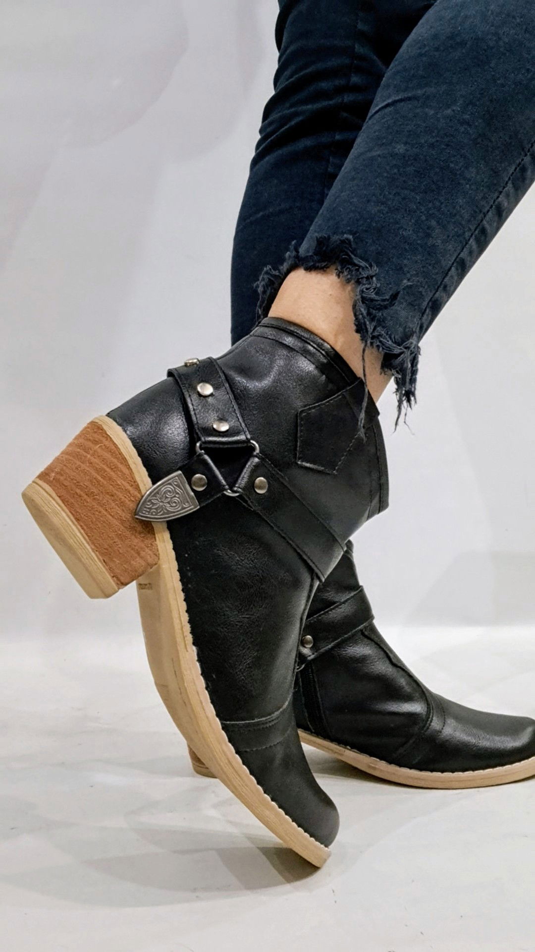 Texana ecocuero con herrajes desmontables. Horma justa.
