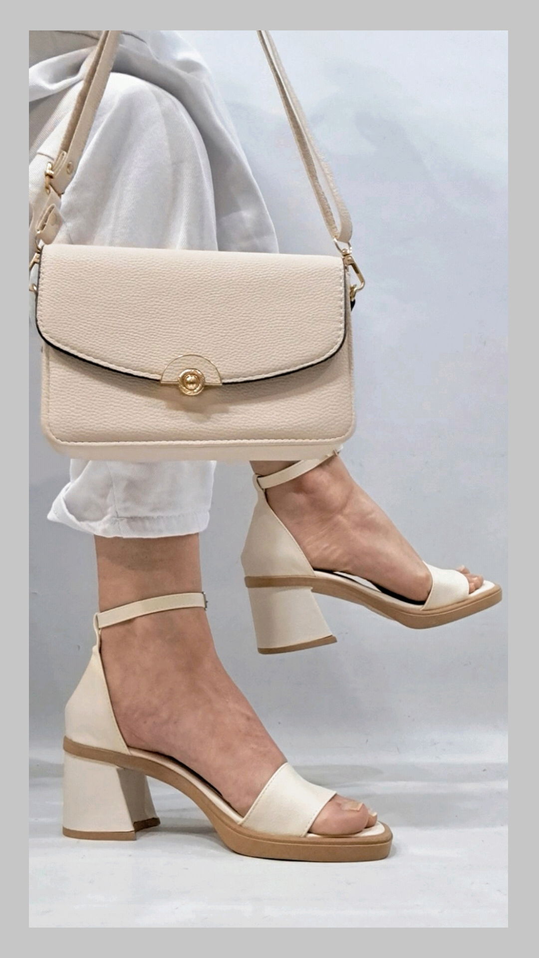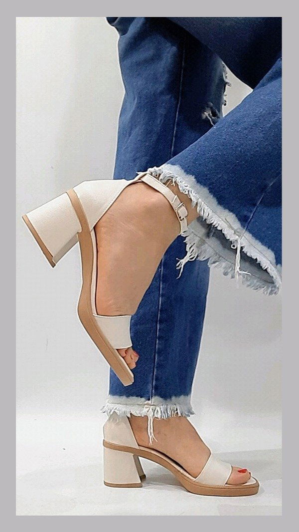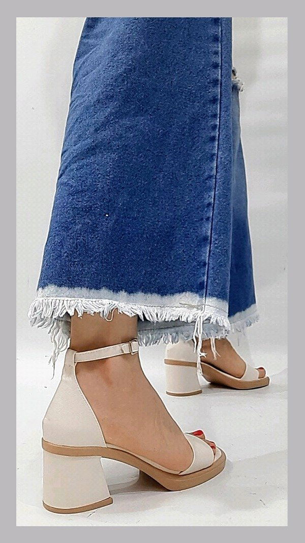 Sandalias bajas con talonera. Taco de 6 cm. Horma normal. Material ecocuero.