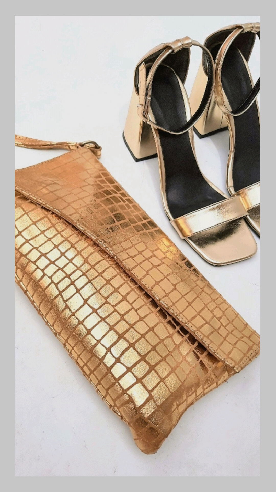 Sobre de cuero con doble broche imán. Interior forrado con cierre central.