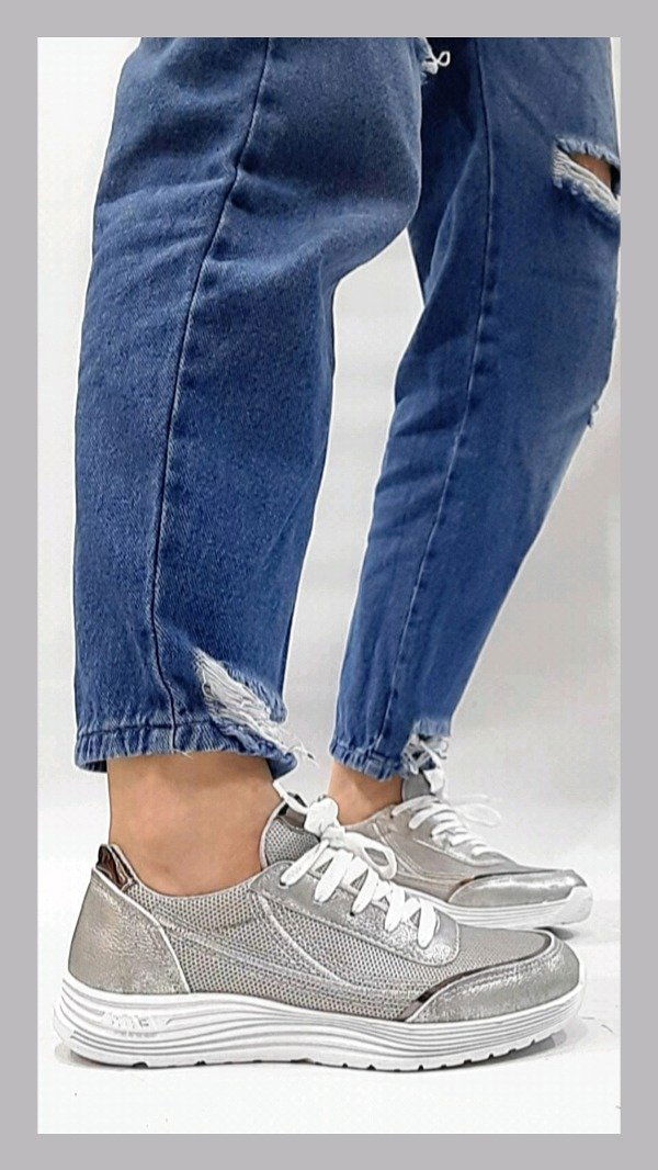 Zapa microfibra gris con detalles en plateado.