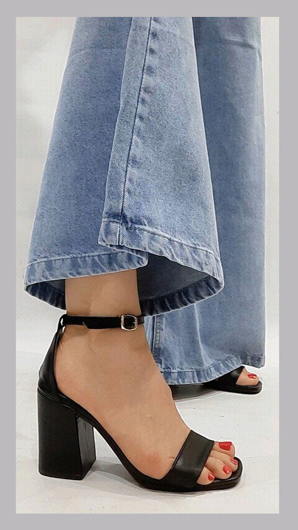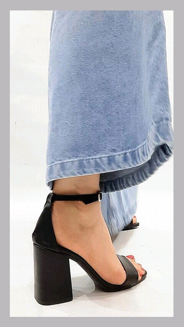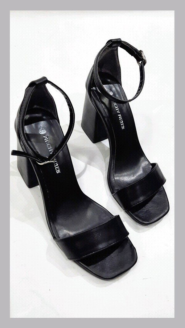 Sandalias con talonera. Taco de 9 cm. Horma normal. Material ecocuero.